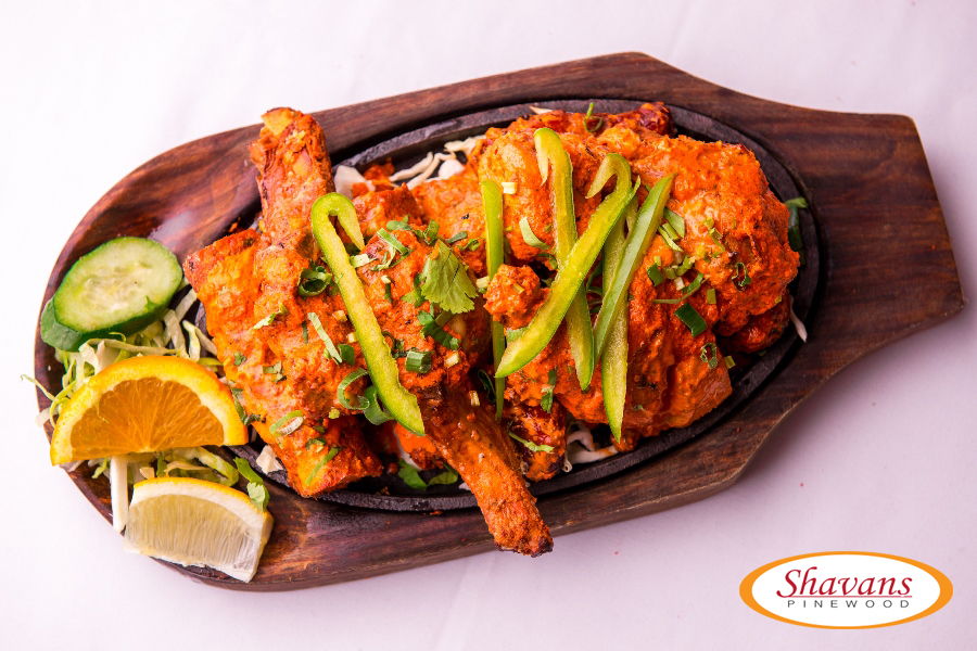 Spring chicken marinated in yoghurt with delicate herbs & spices grilled in Tandoor