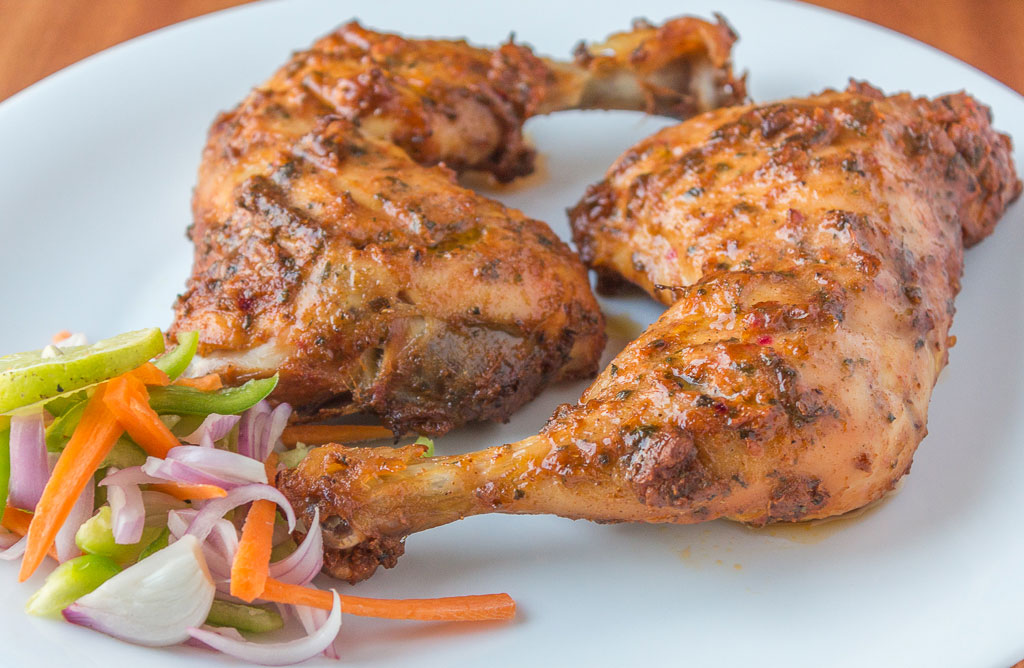 Spring chicken marinated in yoghurt with delicate herbs & spices grilled in Tandoor